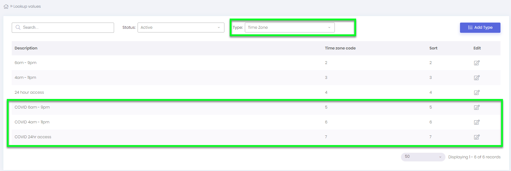 Next, you will then need to modify your original set of time zones and set these to have no access to your facility.