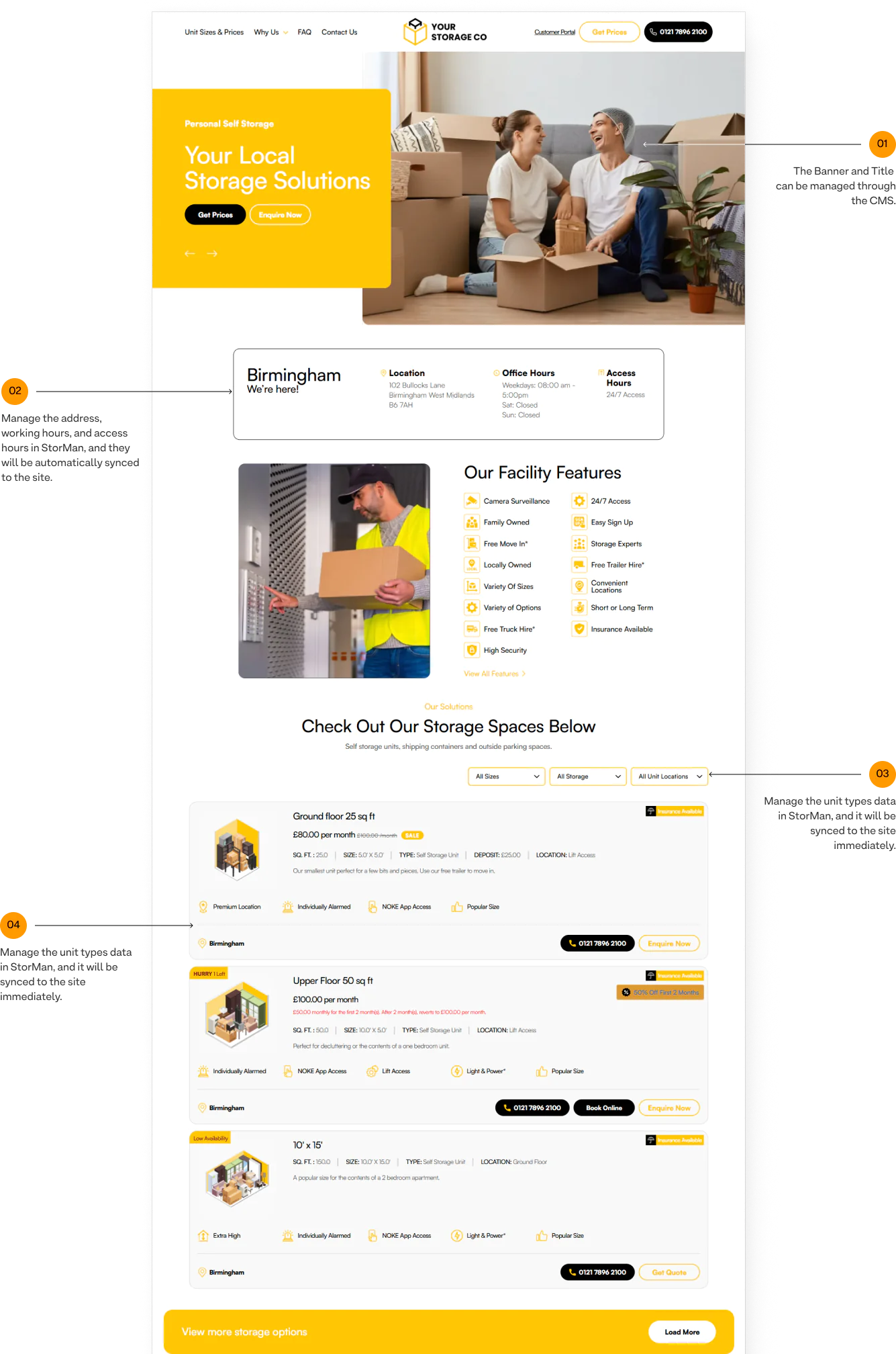 Manage the unit types data in StorMan, and it will be synced to the site immediately.