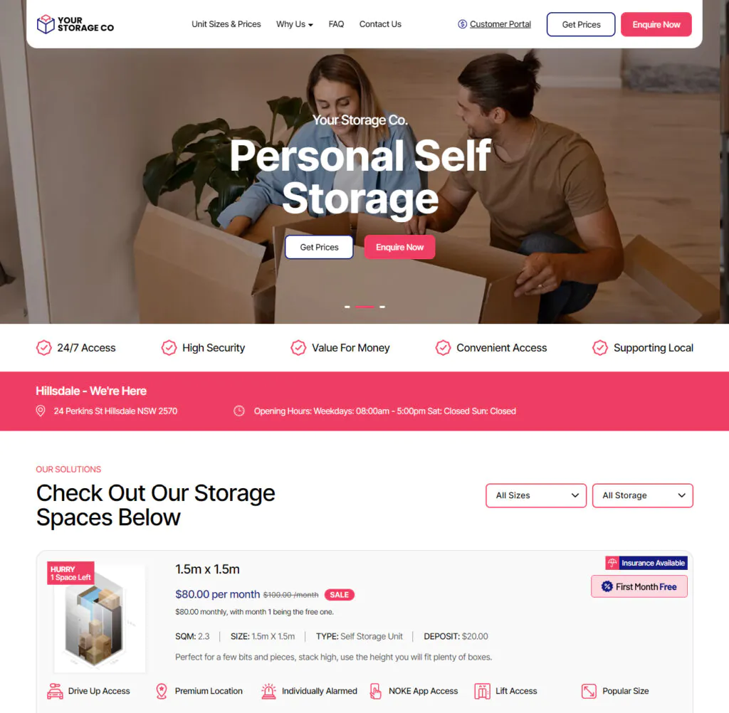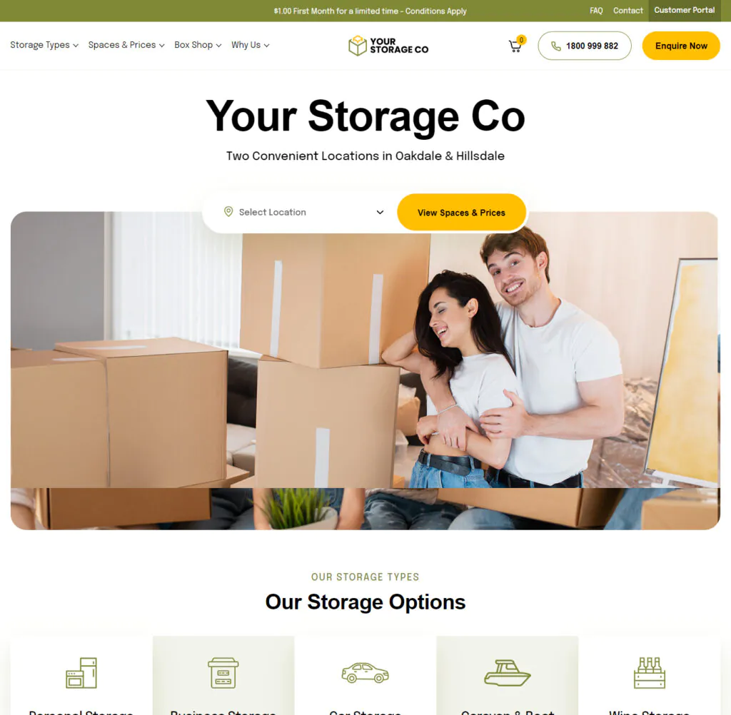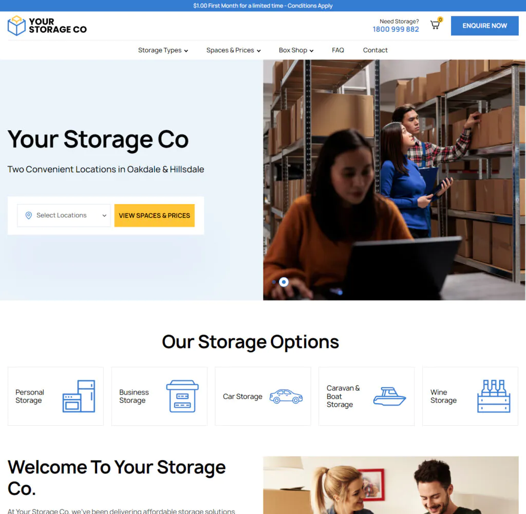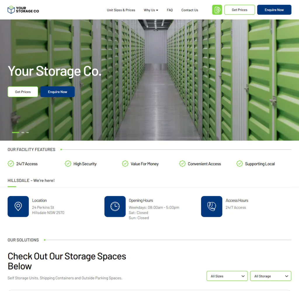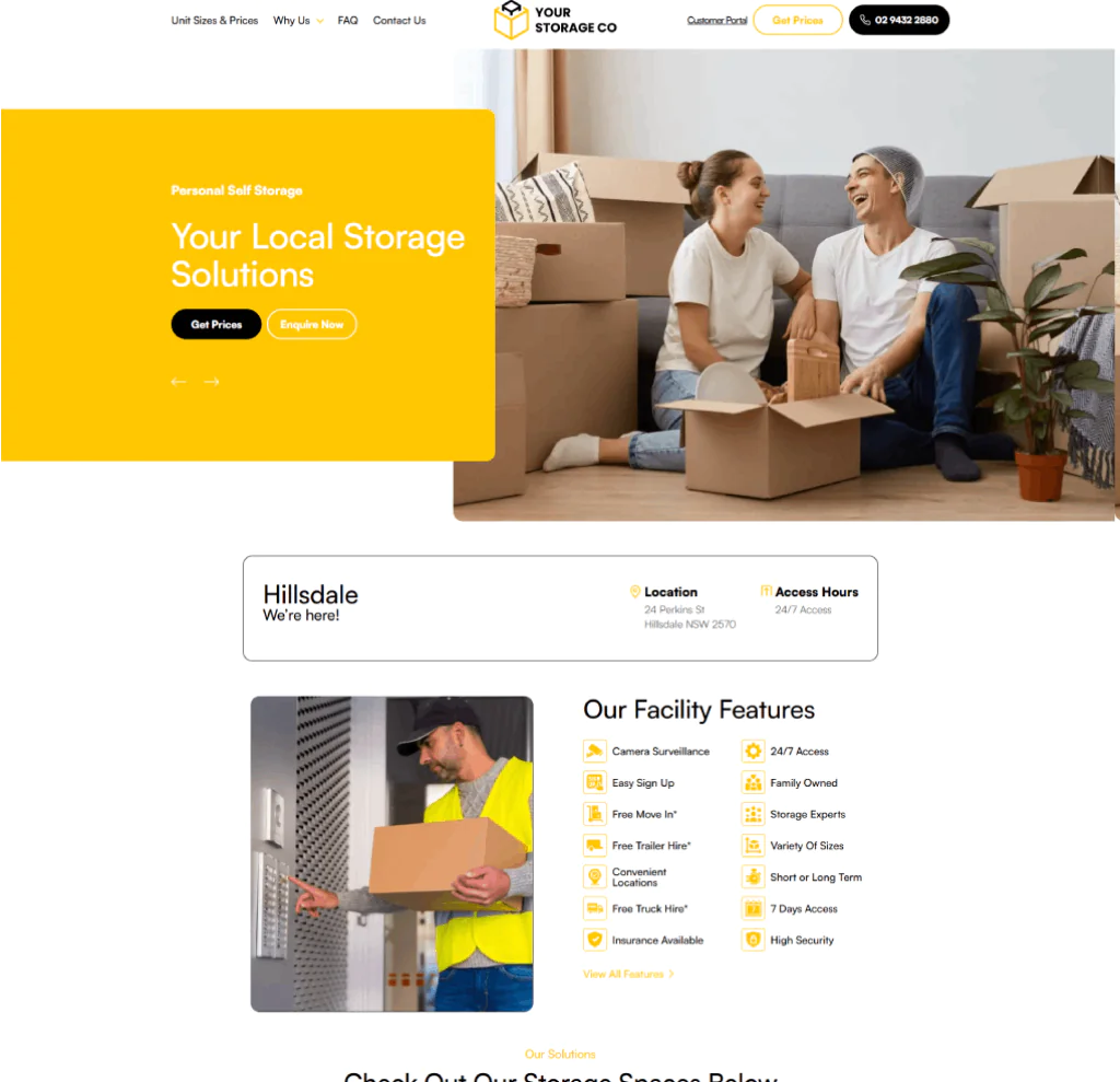 Our Growth Plan website is tailored for small to medium-sized self-storage facilities with a single location, offering an optimised online presence to boost local visibility and drive more leads. Click "View Details" to learn more about design options, content management and Storman integration.