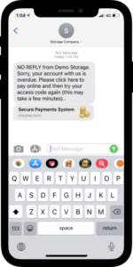 For overdue and locked out customers that try to enter your facility, Storman can automatically send them an SMS with a link to pay their account online.