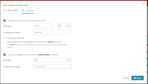 You can now create fees against your notices, inside correspondence plans. Need to set up a $22 late fee every time someone receives a 14 day late email? Or perhaps a $5 postage fee for every letter or invoice that gets printed? This feature takes care of that for you.